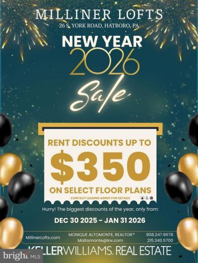 AVAILABLE AUGUST 18, 2025, NEW CONSTRUCTION LOFT APARTMENTS! Welcome to Hatboro’s Milliner Lofts, where modern luxury meets ultimate convenience! These stunning loft apartments offer a blend of style and accessibility in the heart of a vibrant community. Prime Location Milliner Lofts are just steps from the train station, making your daily commute effortless. Whether you’re heading into the city or staying local, everything you need is within reach. Vibrant Community Enjoy being just a short stroll away from boutique shops, charming cafés, and top-notch dining. Whether it’s a quick coffee or an evening out, you’ll love the convenience. Luxury Living These lofts feature open-concept designs, high ceilings, and oversized windows that flood your space with natural light. The modern kitchens, spa-like bathrooms, and high-end finishes create an upscale living experience. Lifestyle at Your Fingertips Living at Milliner Lofts means being at the center of everything. With Hatboro's local hotspots, and easy transportation access all nearby, you’ll have more time to enjoy life. Your Perfect Home Awaits Milliner Lofts are more than just a place to live—they offer a connected, luxurious lifestyle. Ready to see for yourself? Schedule your call today to discover Hatboro’s premier living destination.
